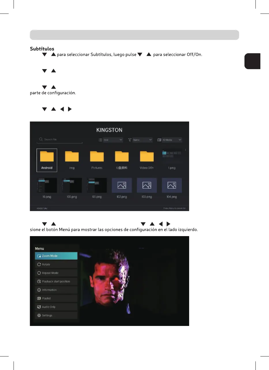 Pulse / para seleccionar Ajustes. Pulse OK para entrar al submenú. Consulte la página de inicio -