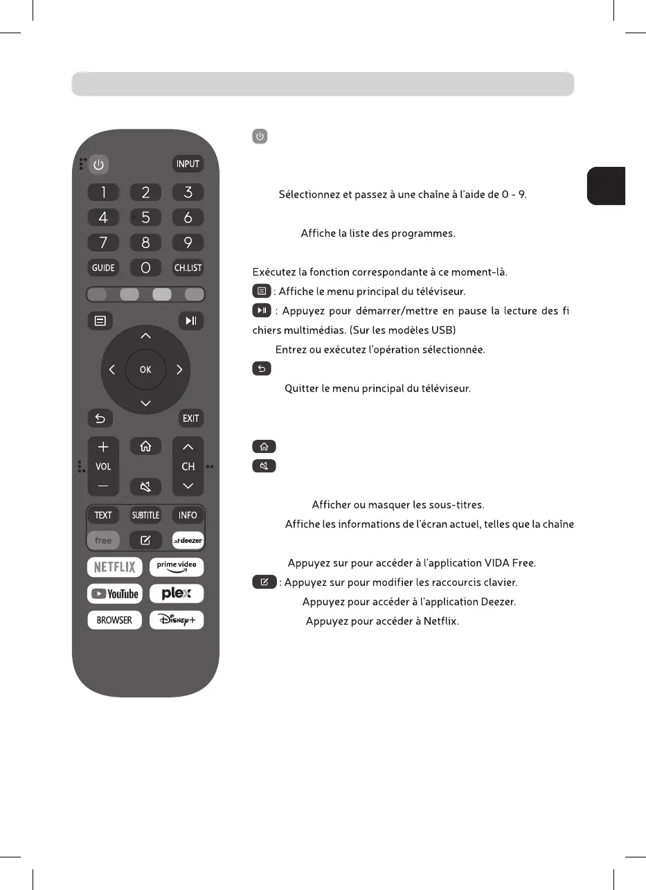 : Bouton ON/OFF, appuyez une fois pour allumer le téléviseur