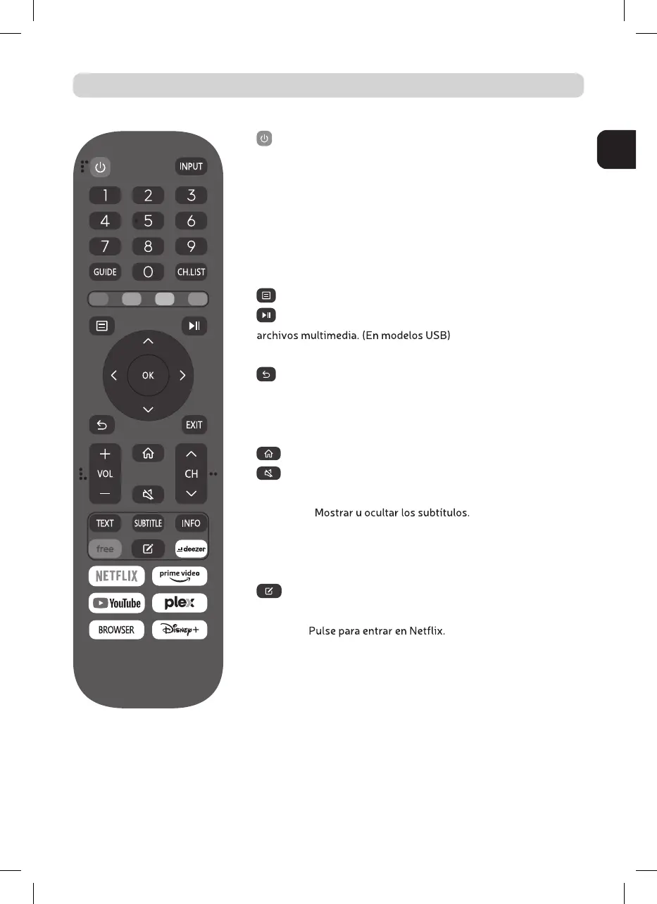 : Botón de ON/OFF, presione una vez para encender el TV