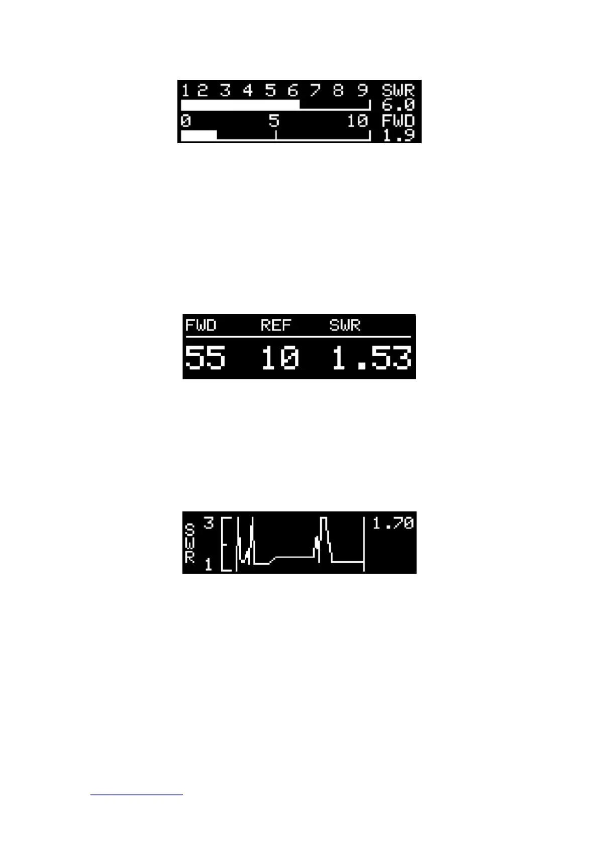 range 0.0-999), REF is the reverse power (0.0-999), SWR (1.00-9.99) is the current standing wave value.