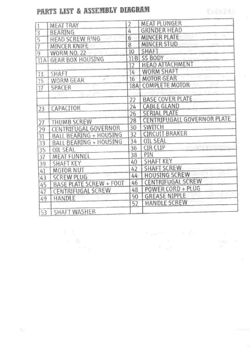 Anvil MIN 0022 - Parts List & Assembly Diagram