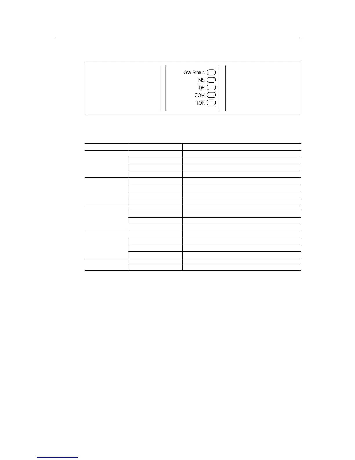The GW Status LED indicates the status of the X-gateway. The other LEDs indicate network