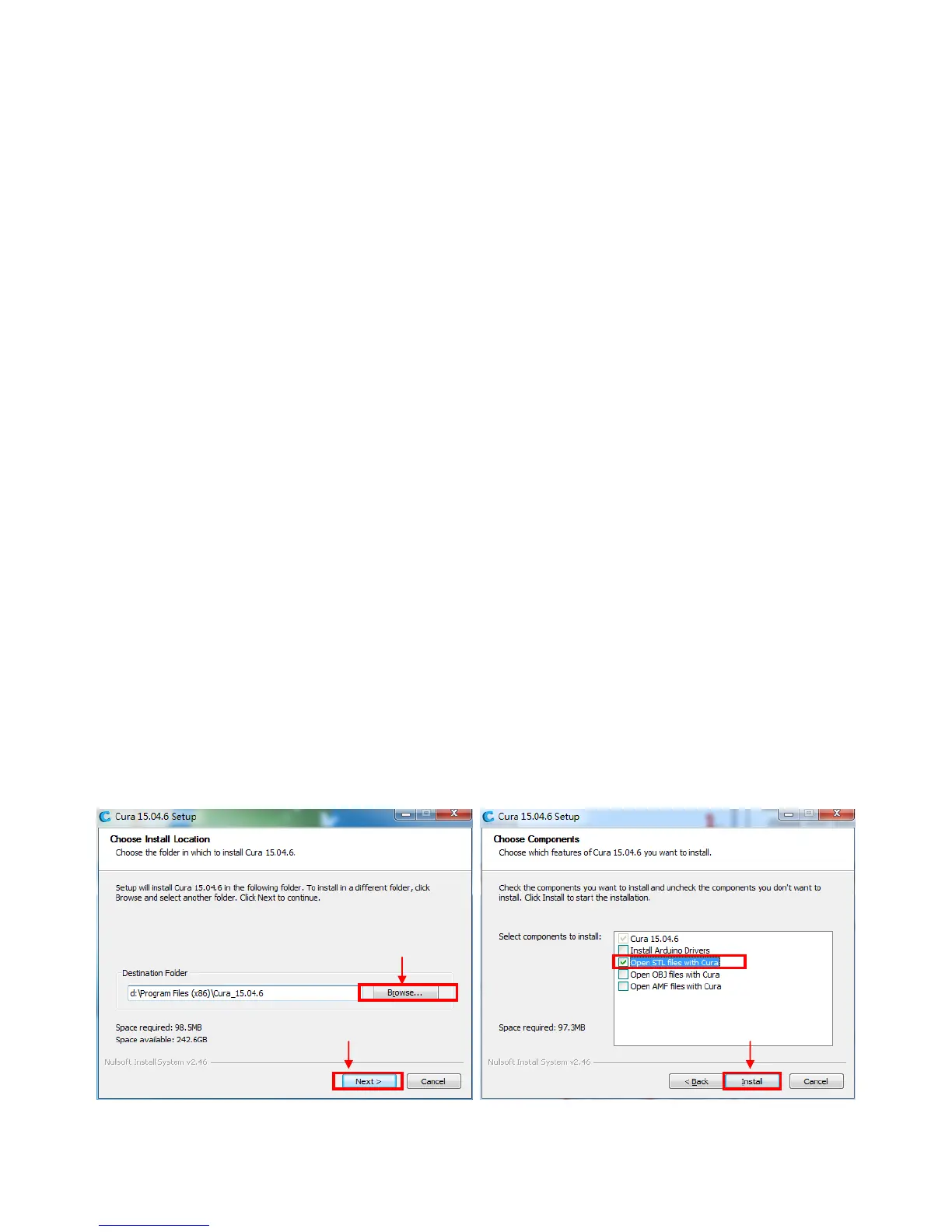 Double click “Cura_15.04.6”, and follow the procedures shown in Fig. 22: