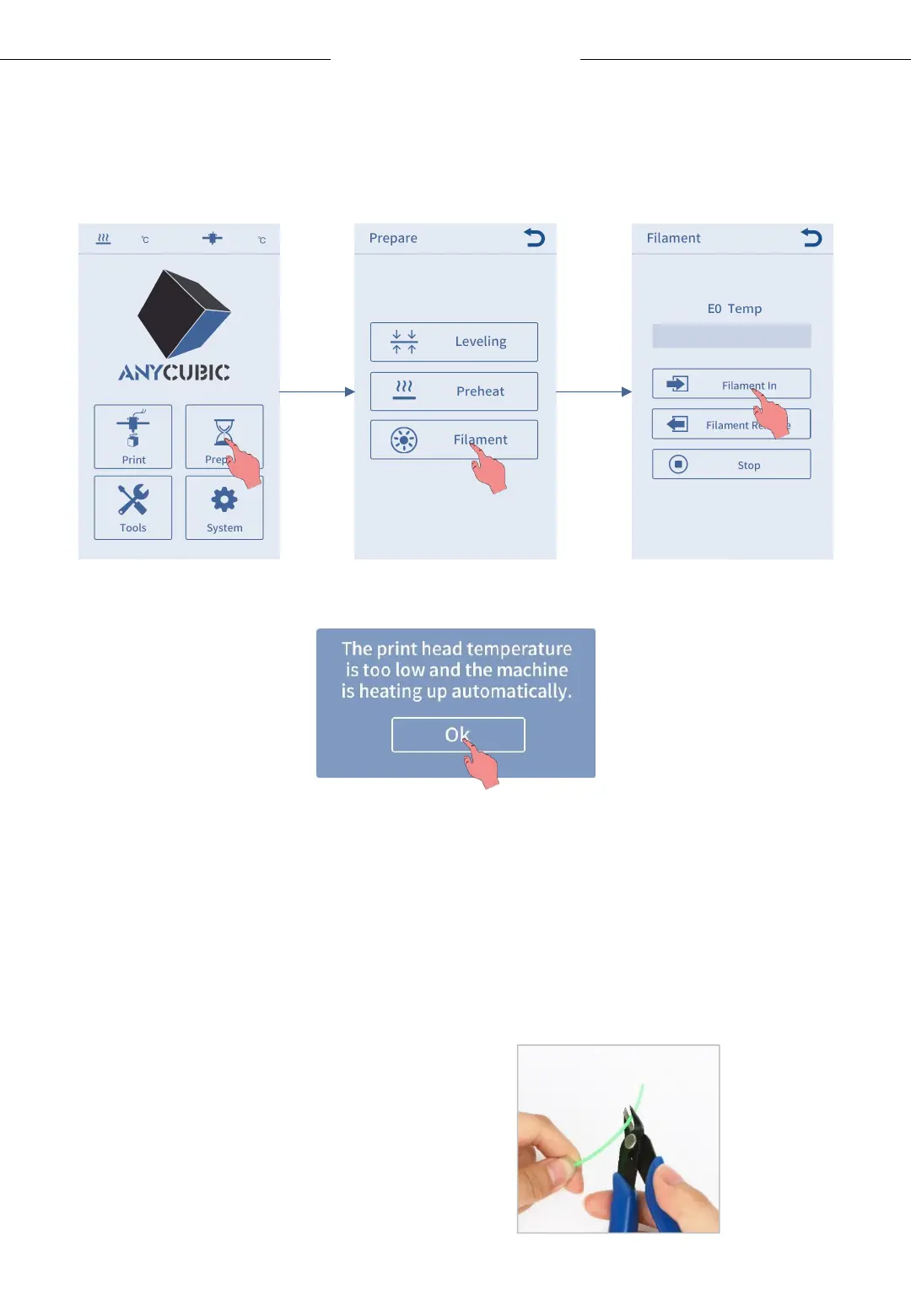 1. Return to main menu, click Prepare → Filament → Filament In, and the