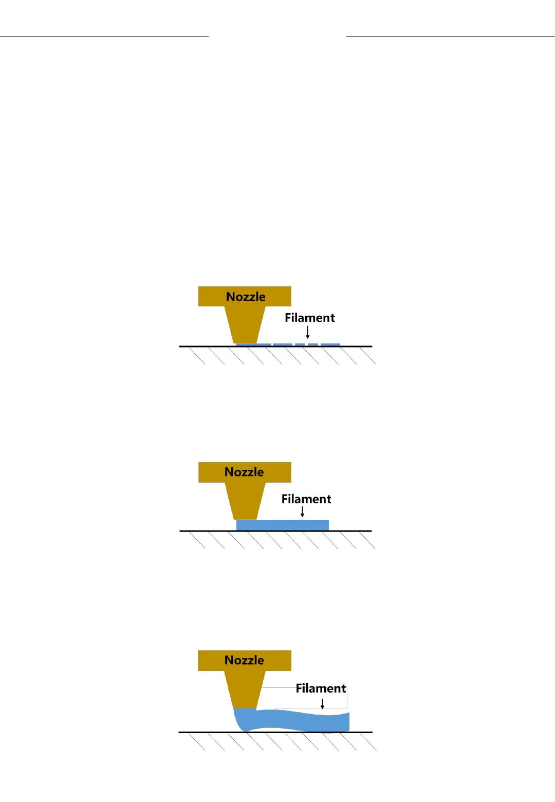 ① Nozzle is too close to the platform, resulting in insufficient extrusion of