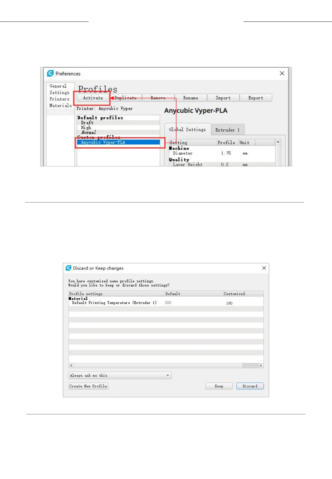 (3) Select the profile that you just imported, and then click the Activate