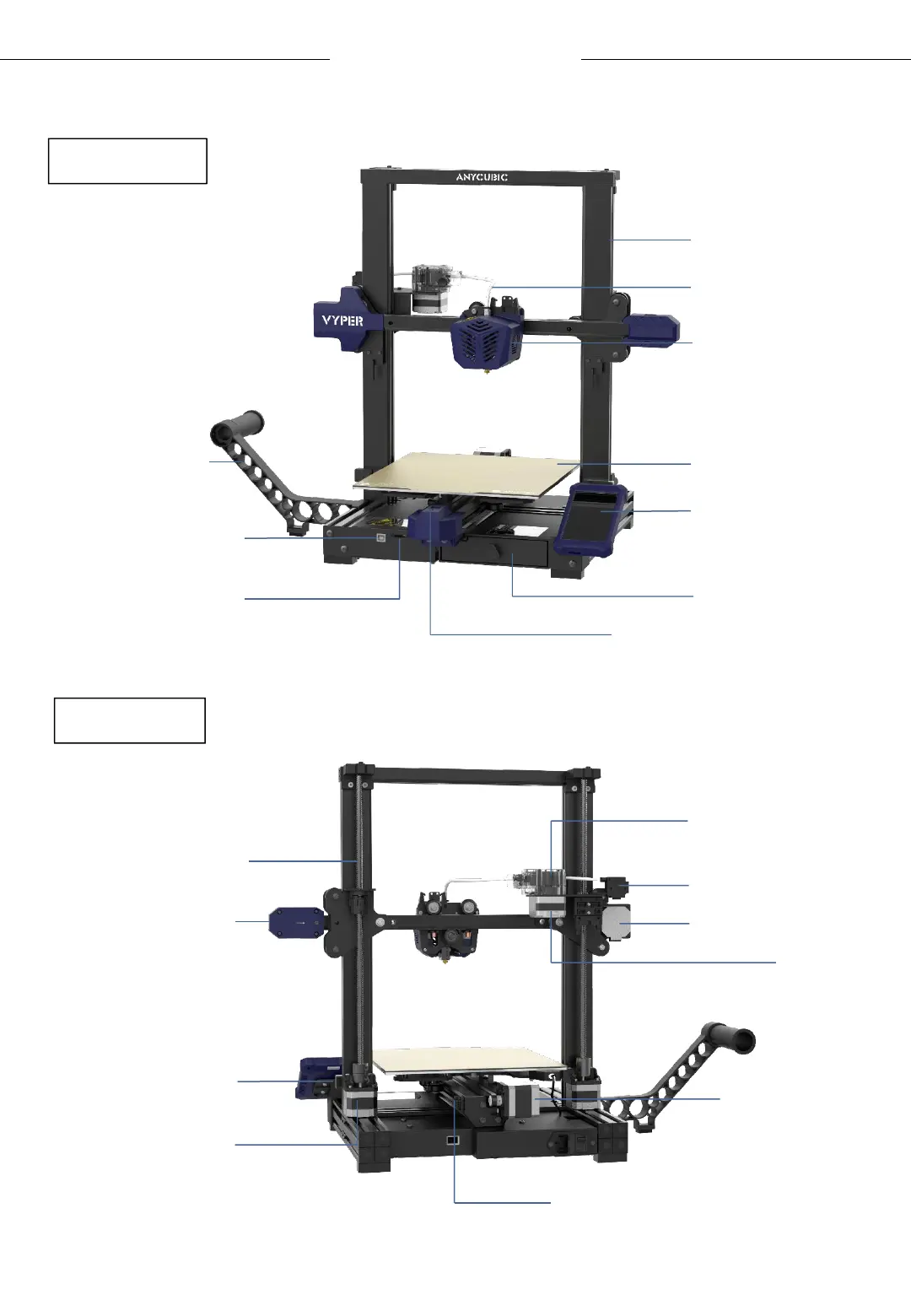 AnyCubic VYPER - Product Overview; Front View Components; Back View Components