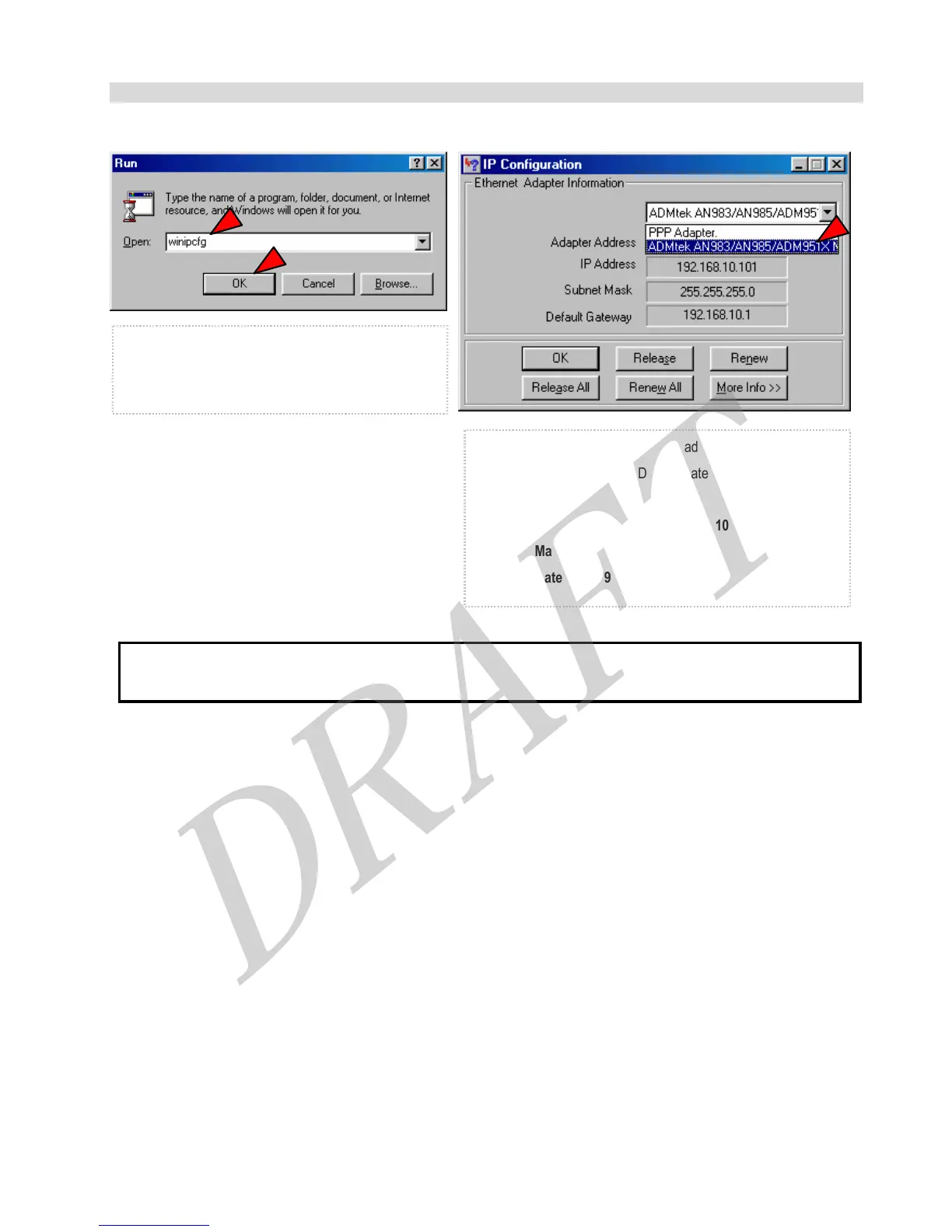 ① Go to [Start > Run]. Type ‘winipcfg’ command,