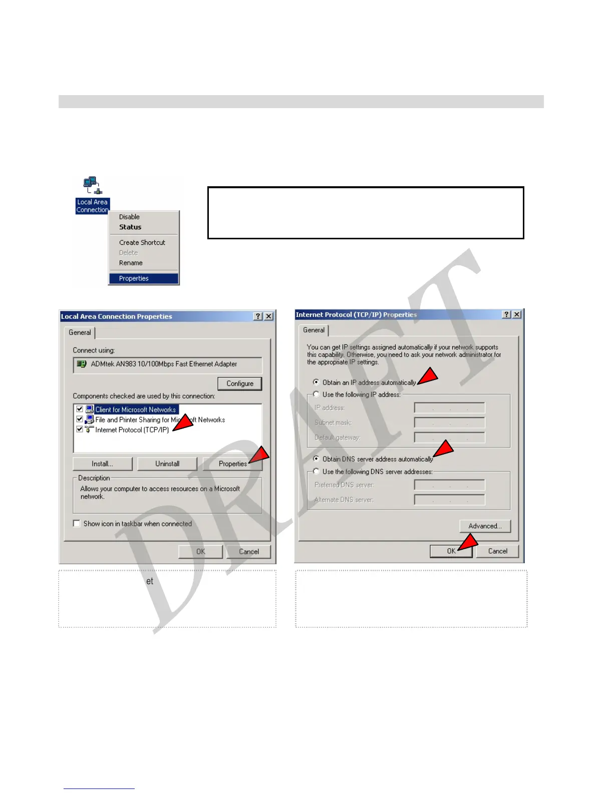 ② Select [Obtain an IP address automatically], [Obtain