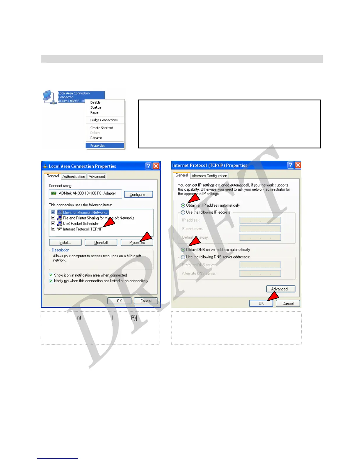 Go to [Control Panel>Network connections], and select ‘Local area connections’ properties by right click of mouse.