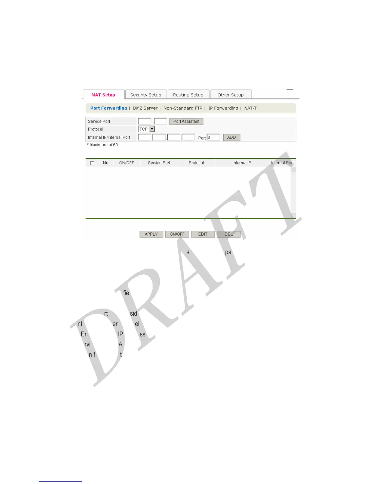 ● Port : Enter service port of LAN side.