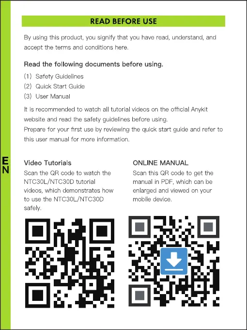 ANYKIT NTC30L - READ BEFORE USE; Video Tutorials; ONLINE MANUAL