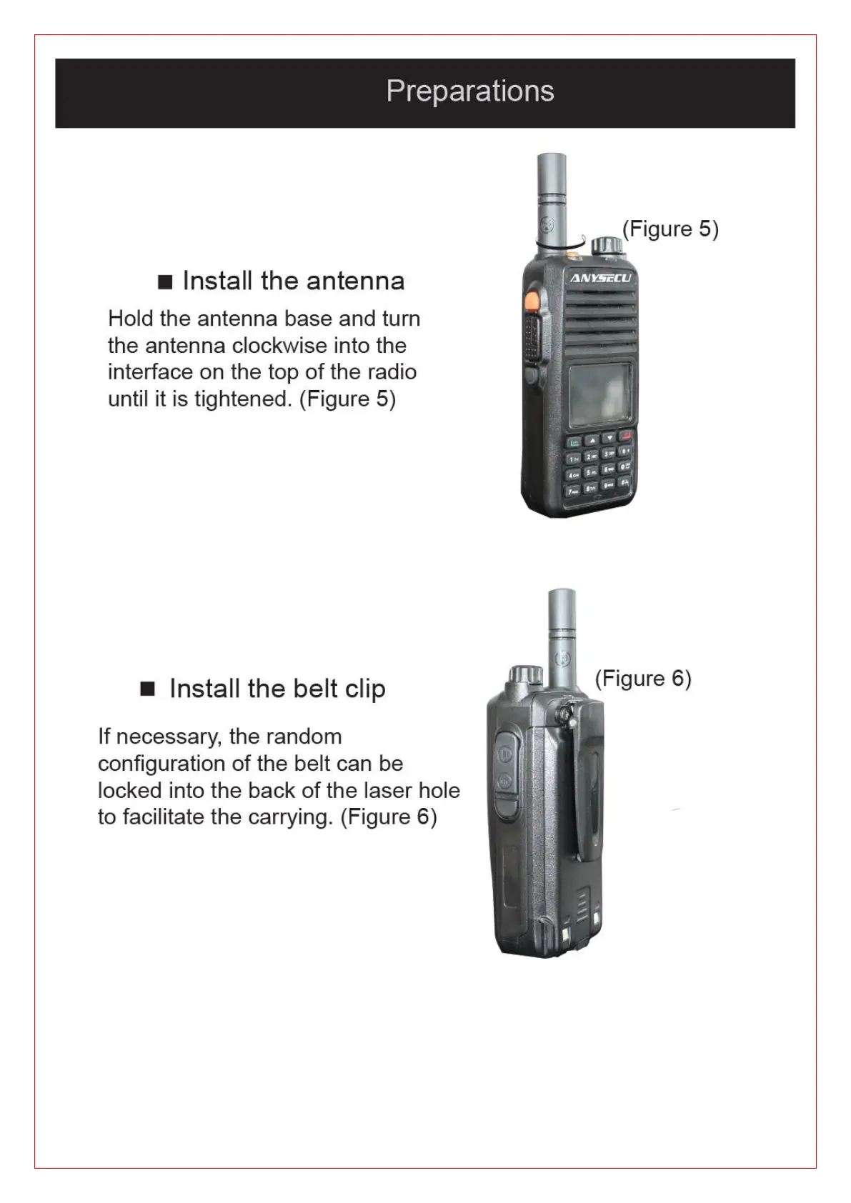 Anysecu G6000 - Installing Device Components; Antenna and Belt Clip