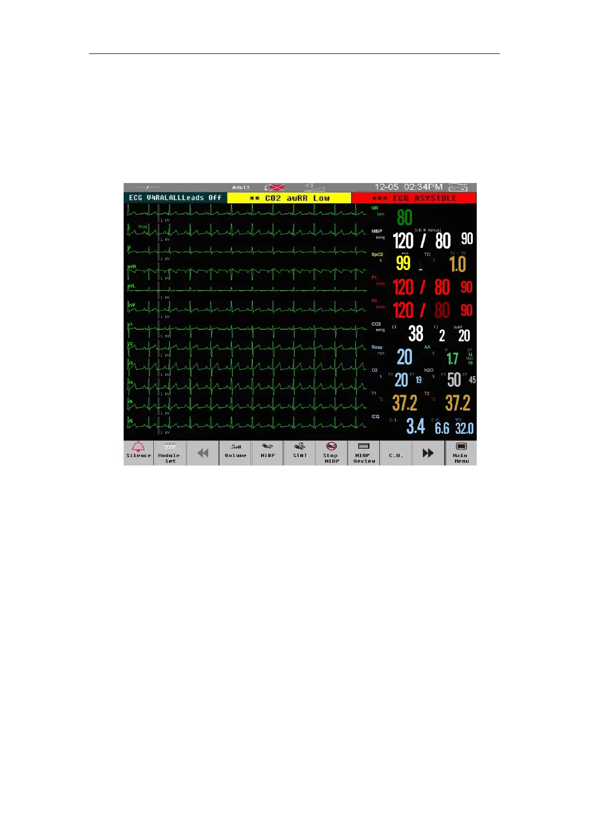 The 12-lead ECG waveforms are displayed in the waveform display area,