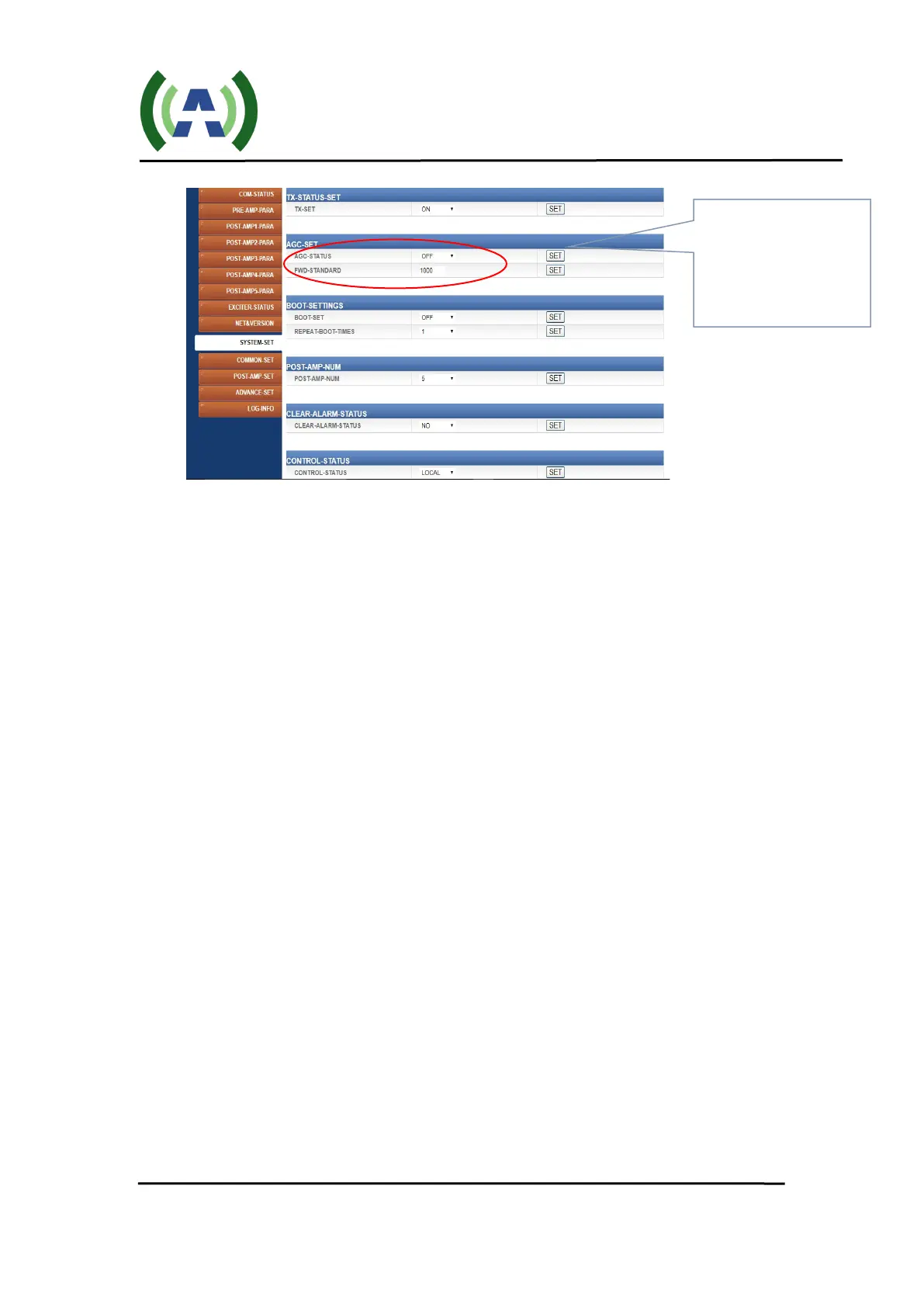 Set Target AGC to