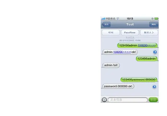 Send SMS "123456 admin 159200XXXXX
