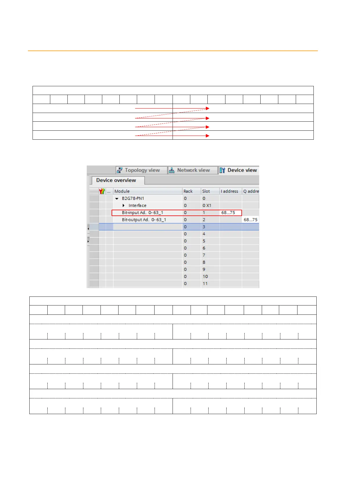 Example) When “Bit-input Ad. 0-63” is I-address “68…75”, as shown below