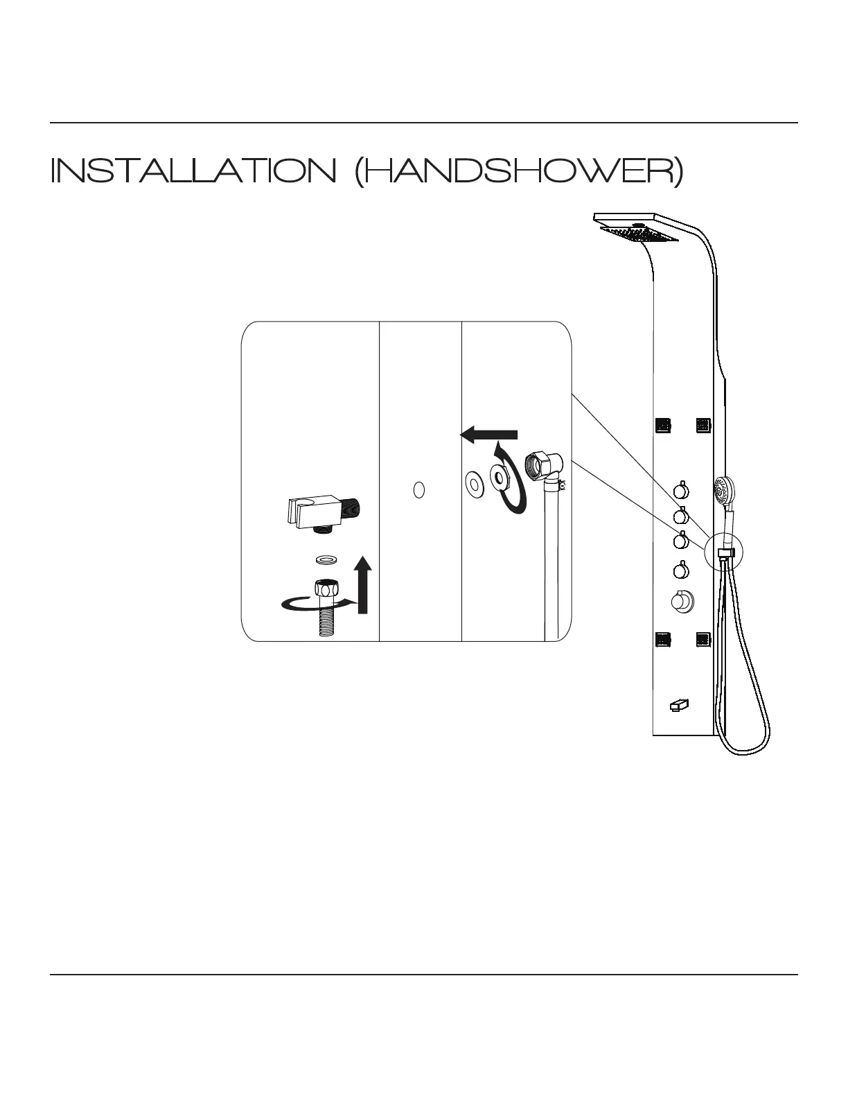 Once the shower panel is fully installed and hung on the bracket, you can install the hand