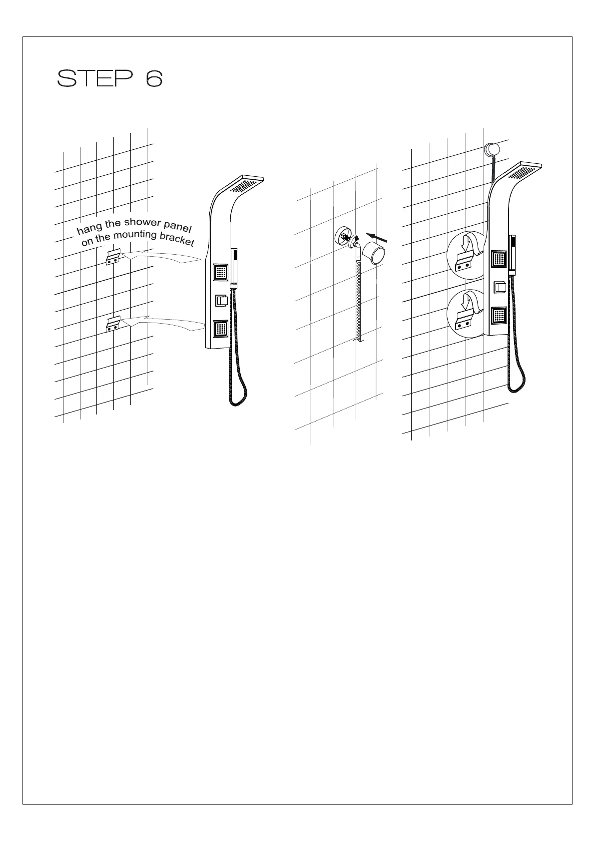 panel must be seated onto the mounting brackets by pulling down the shower panel.