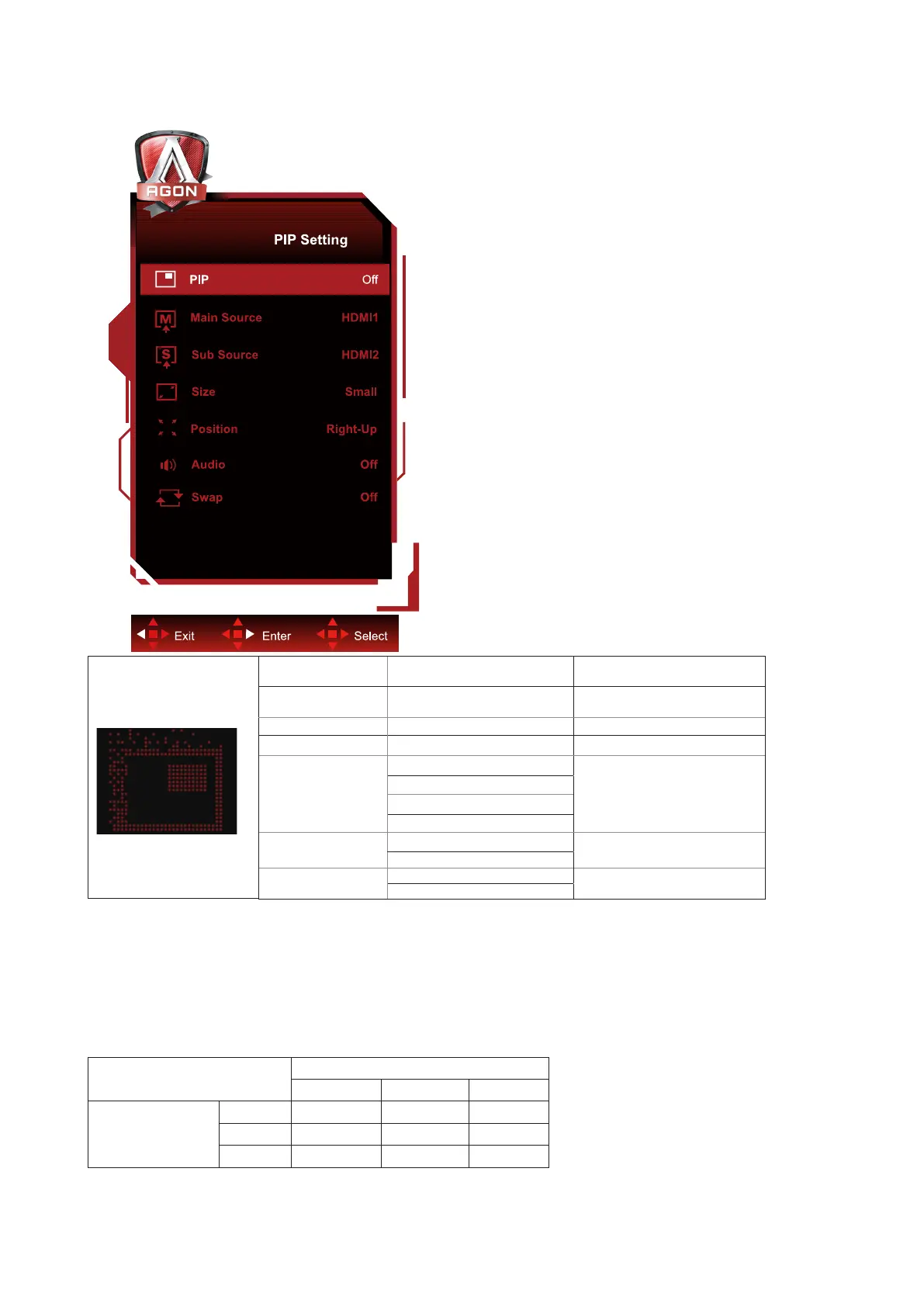 4)When PBP/PIP is enabled, the compatibility of the main screen/sub-screen input source is shown in the