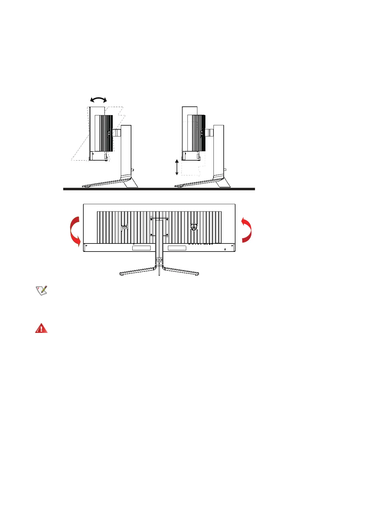 1. To avoid potential screen damage, such as panel peeling, ensure that the monitor does not tilt downward by more than -5 degrees.
