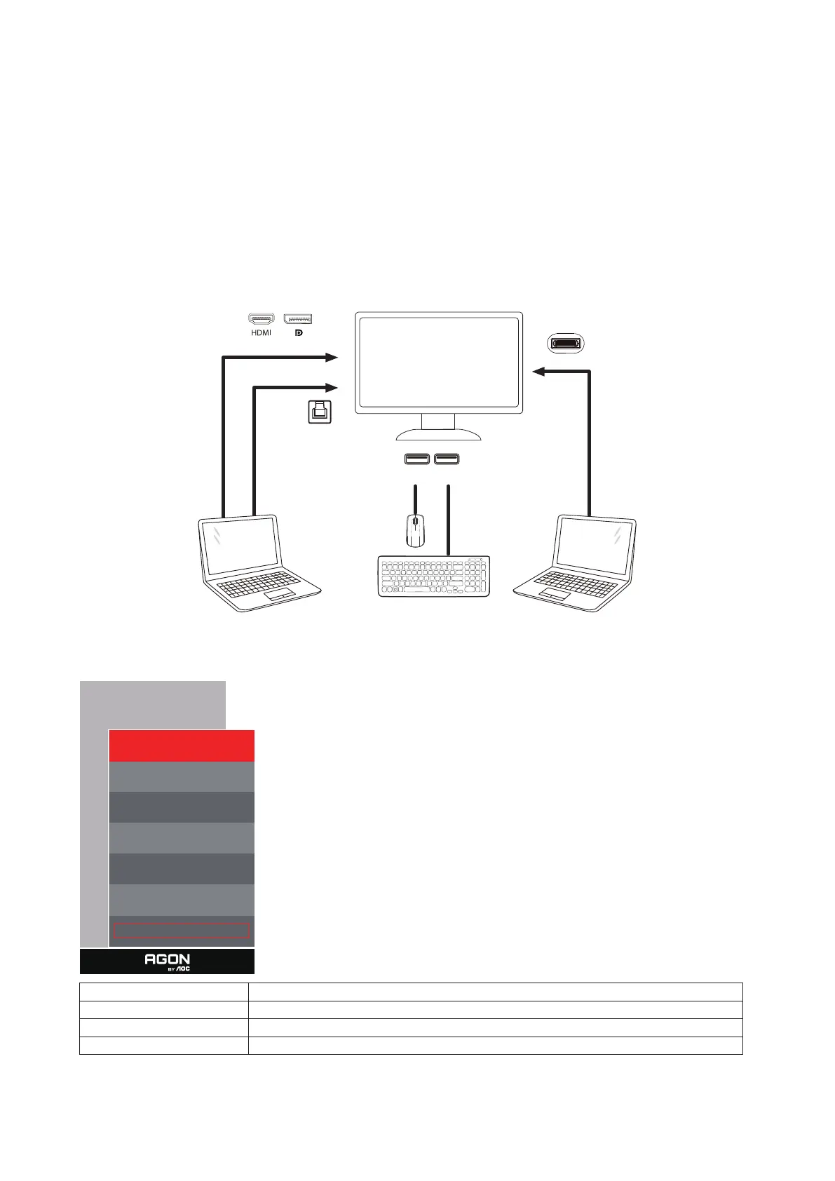 With KVM function, you can show two PCs, or two notebooks, or one PC and one notebook on one AOC monitor and control the two