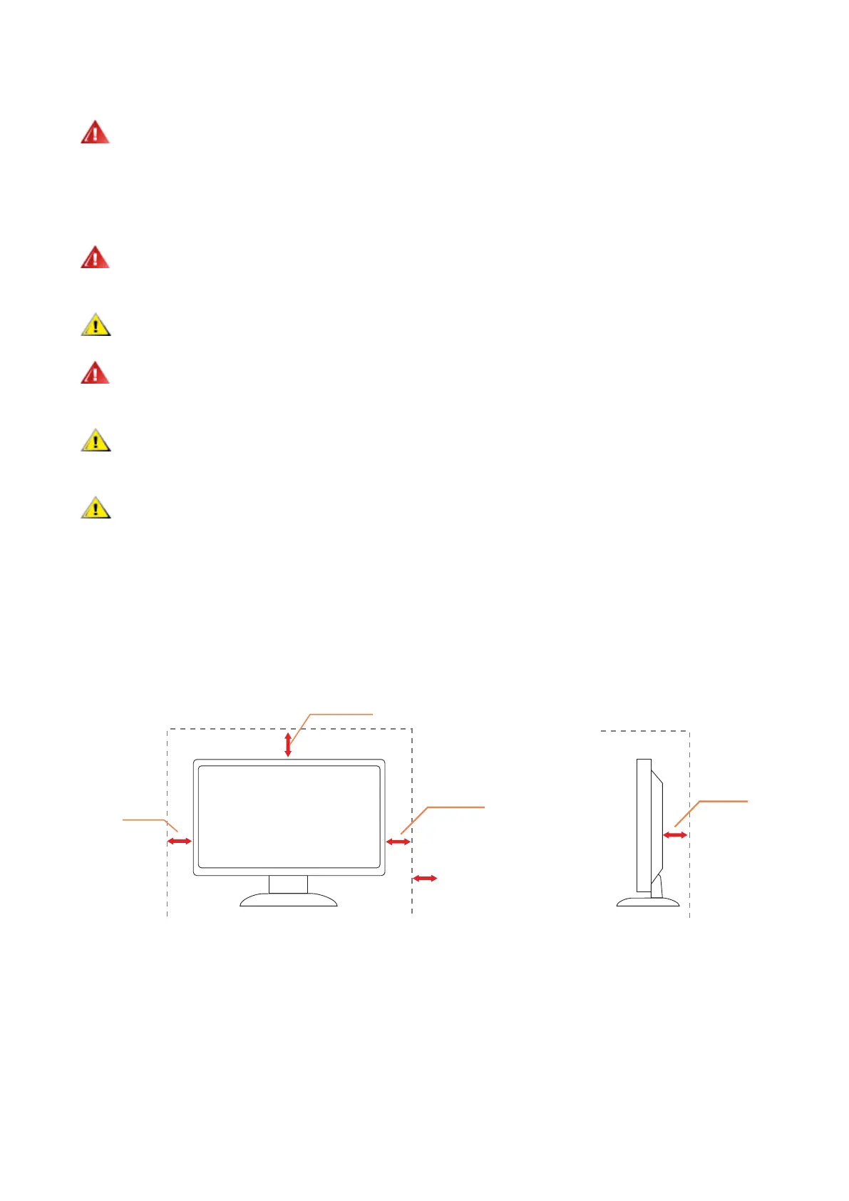 See below the recommended ventilation areas around the monitor when the monitor is installed on the
