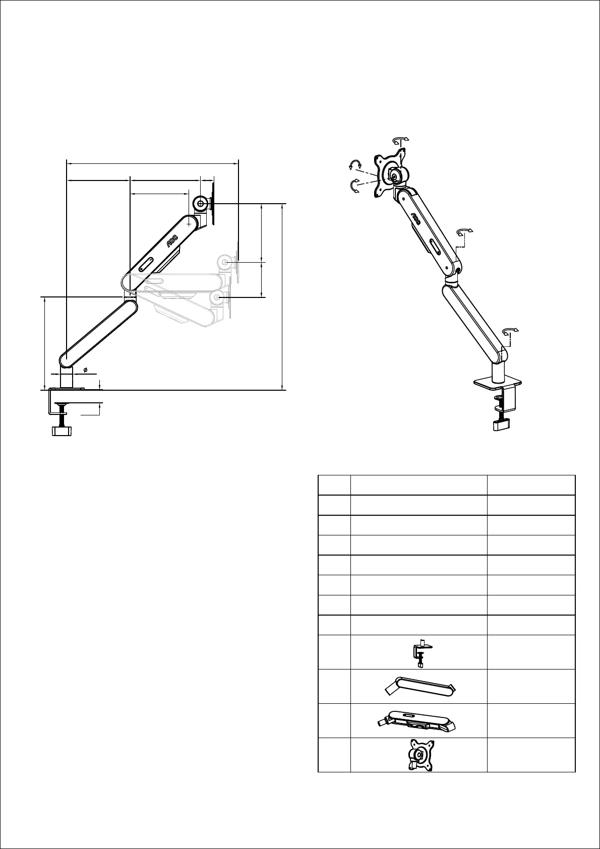 Liste des pièces du produit