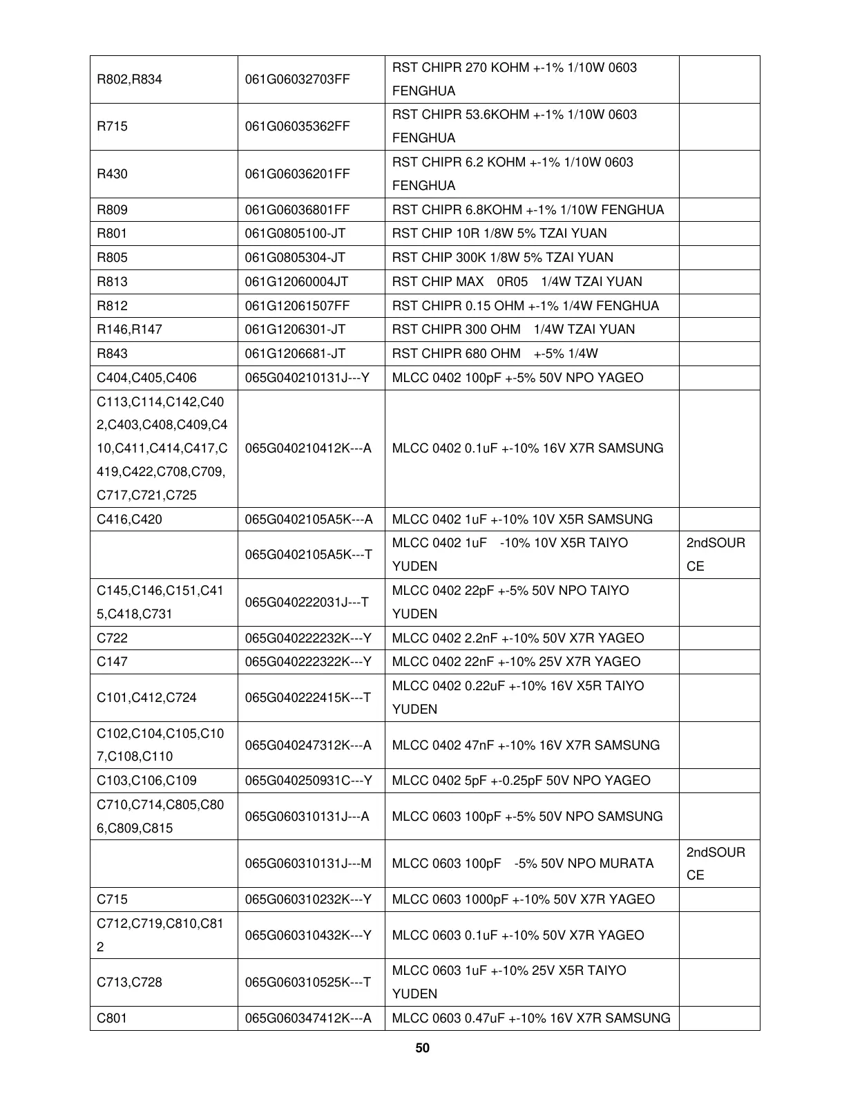 C103,C106,C109 065G040250931C---Y MLCC 0402 5pF +-0.25pF 50V NPO YAGEO