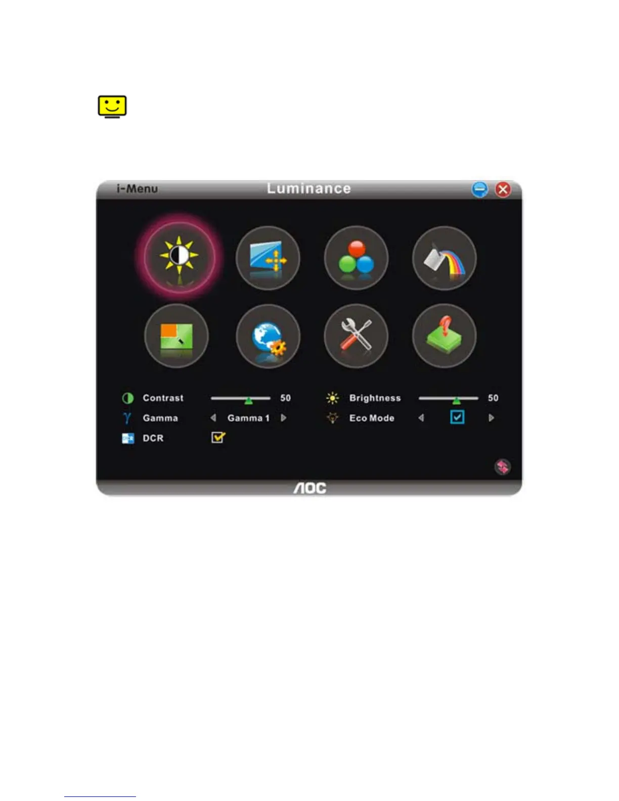 Welcome to “i-Menu” software by AOC. i-Menu makes it easy to adjust your monitor display setting by using on