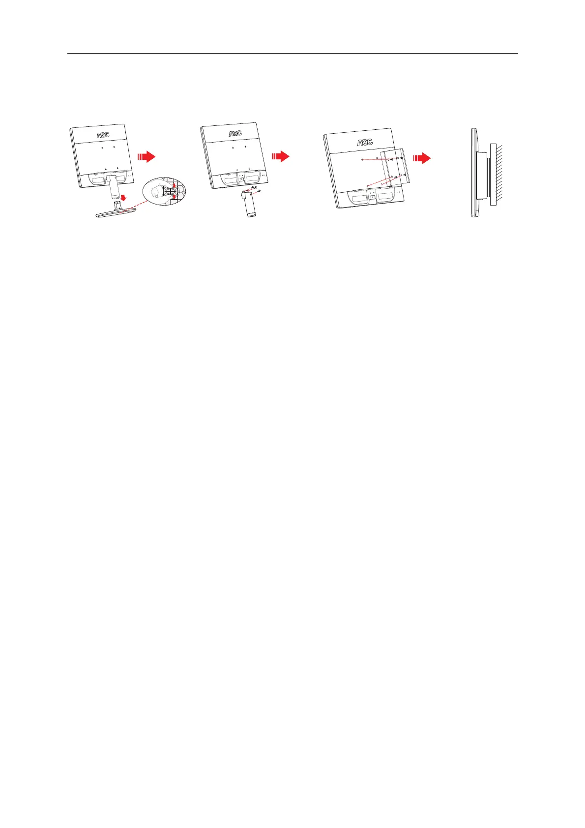 3 Place the wall mounting arm onto the back of the monitor. Line up the holes of the arm with the holes in the