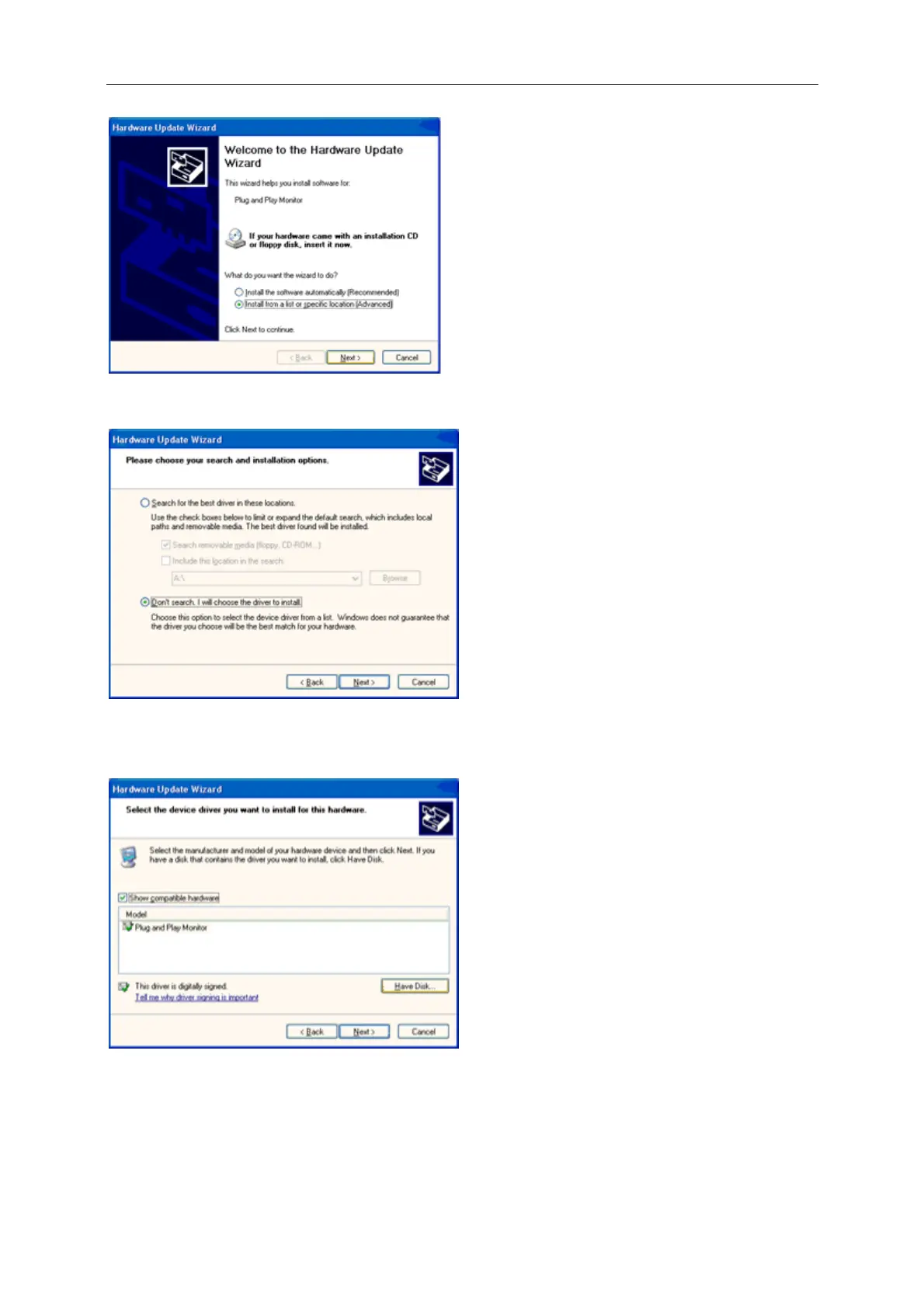 12. Select your monitor model and click on the 'Next' button.