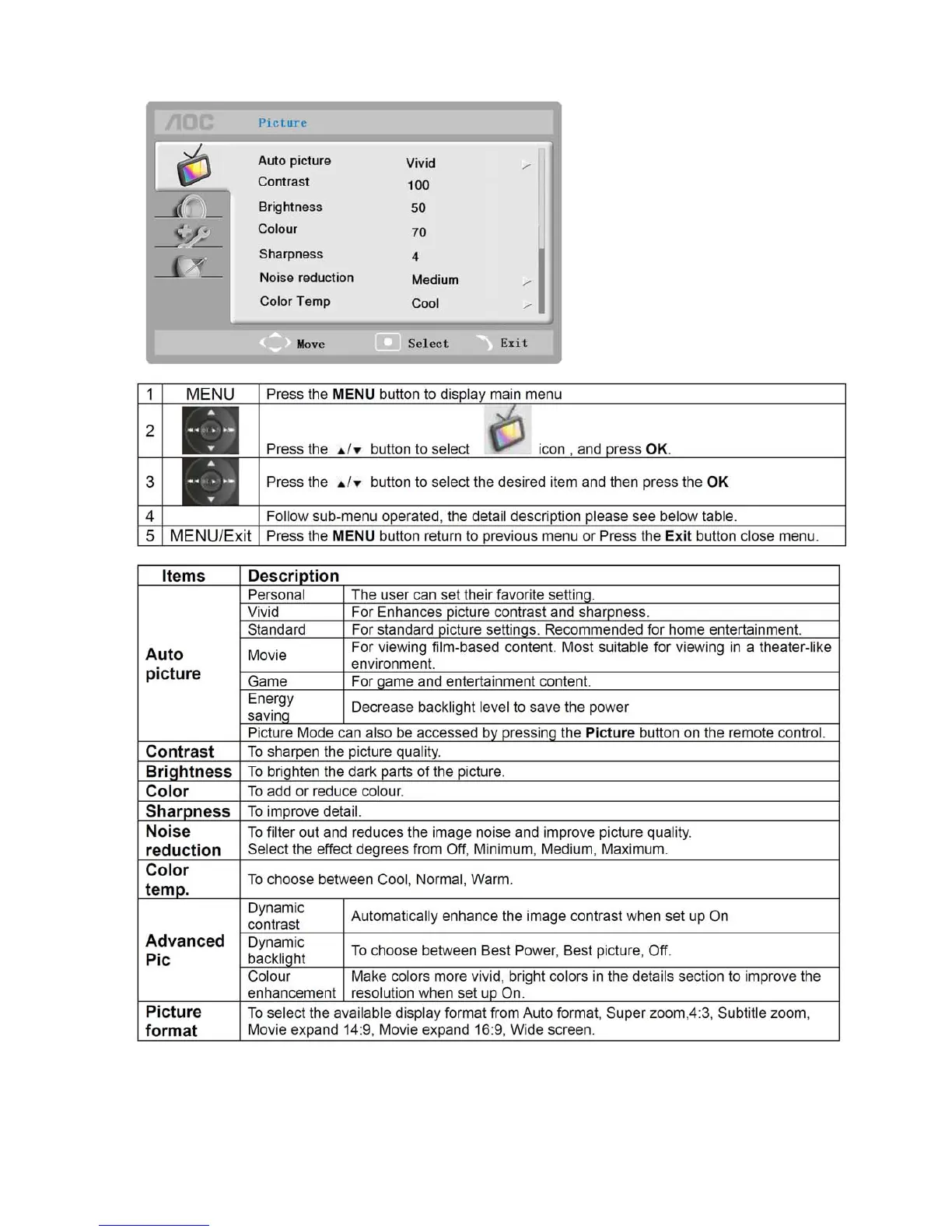 The Picture Setting in TV mode shows as below.