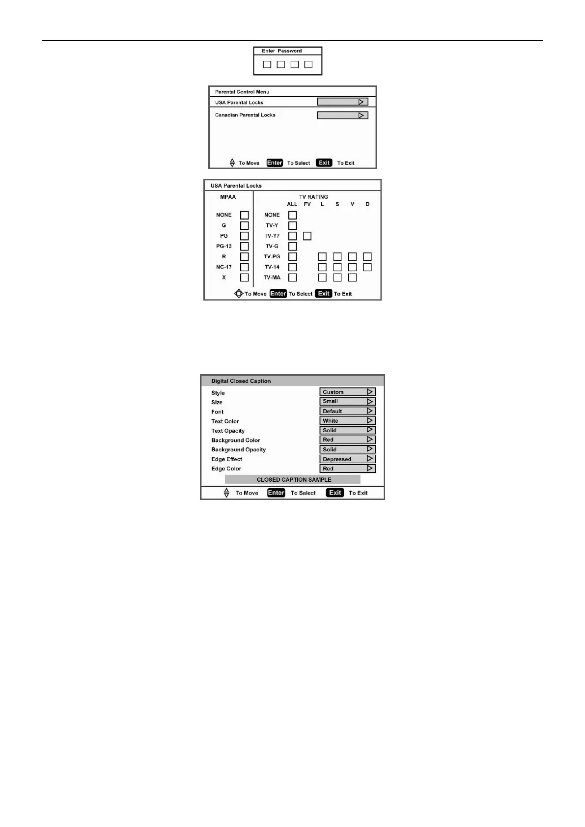7. Digital Close Caption: Provide numerous options for setting the digital close caption style. In the sub-menu.