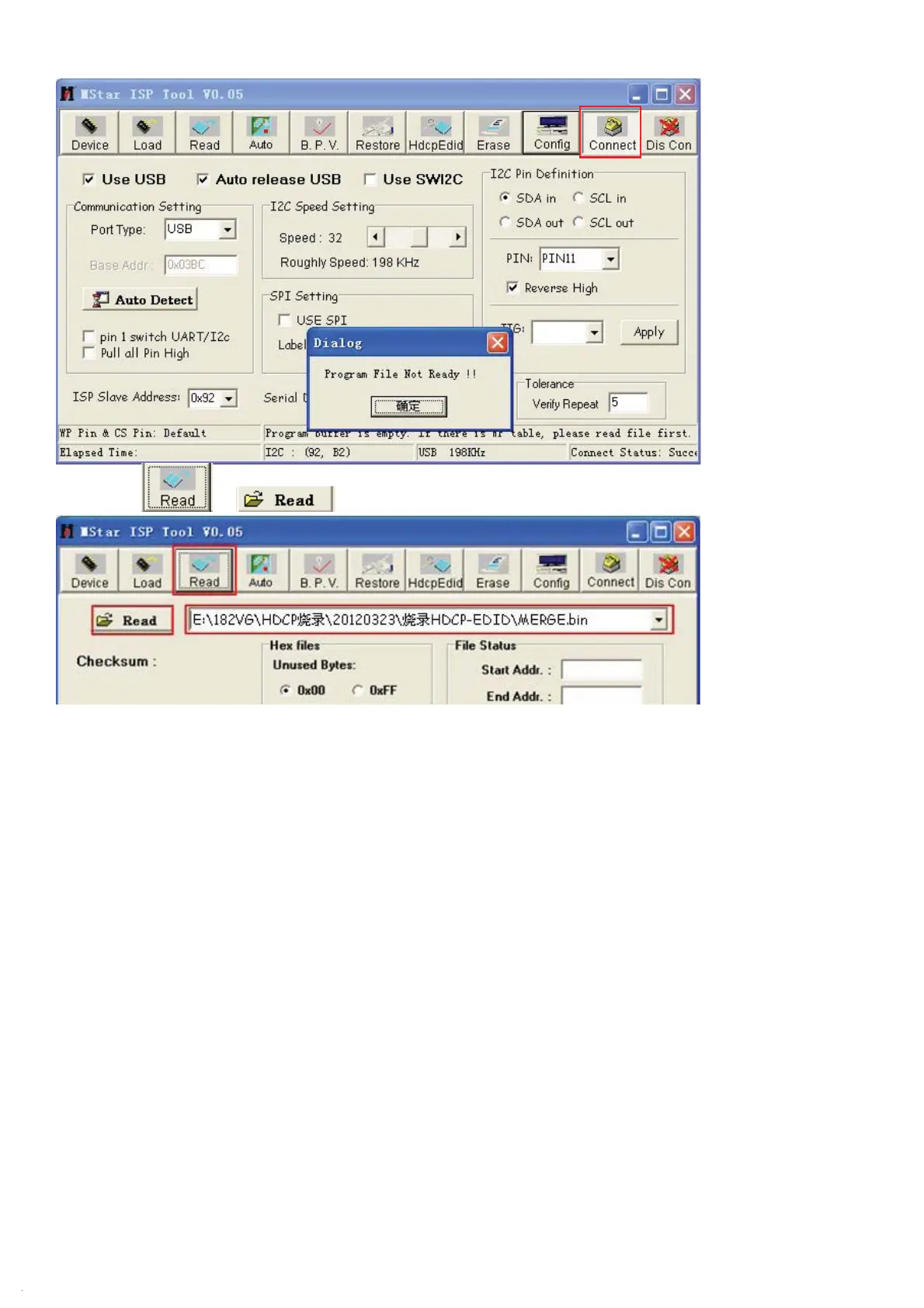 If prompts Device Type is GD25Q32” means that normal connectif prompts Can’t find the Device Type!” means