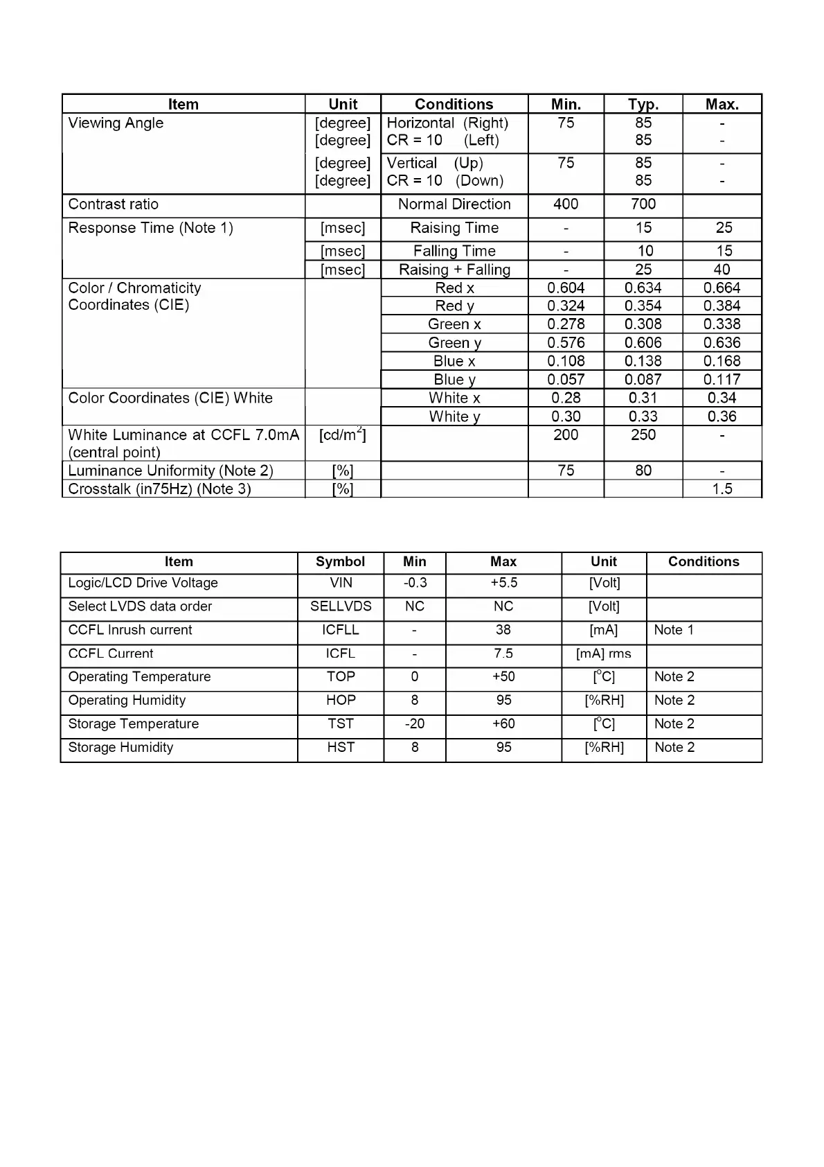 AOC LM927U - Optical Characteristics; Parameter Guide Line for CCFL Inverter
