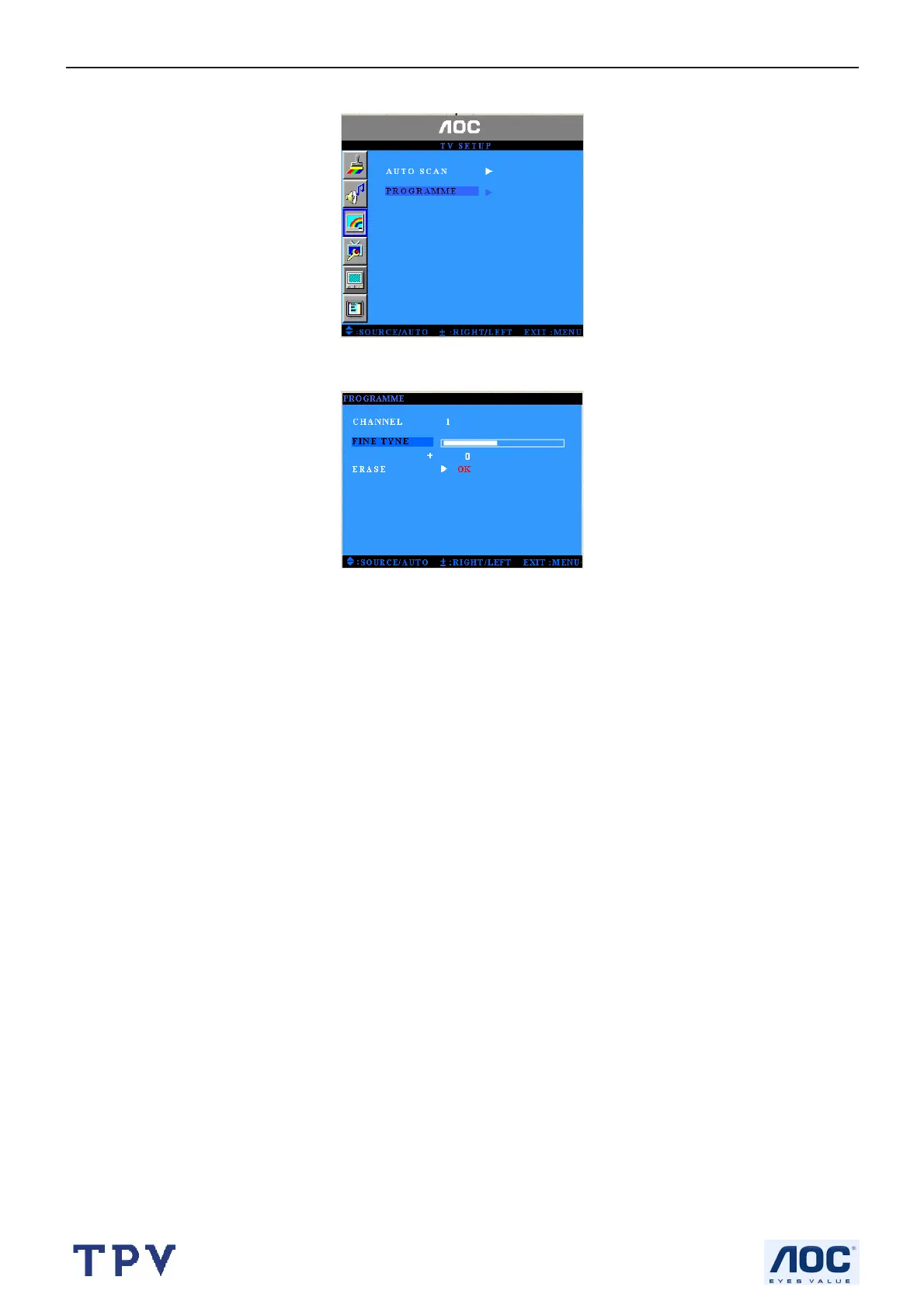 The following menu appears only in the TV mode.