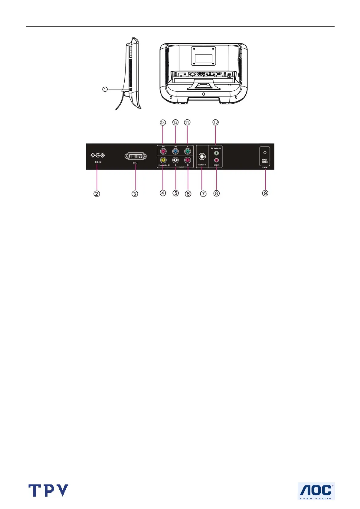 11, 12 and 13: Y Pb Pr Component signal input