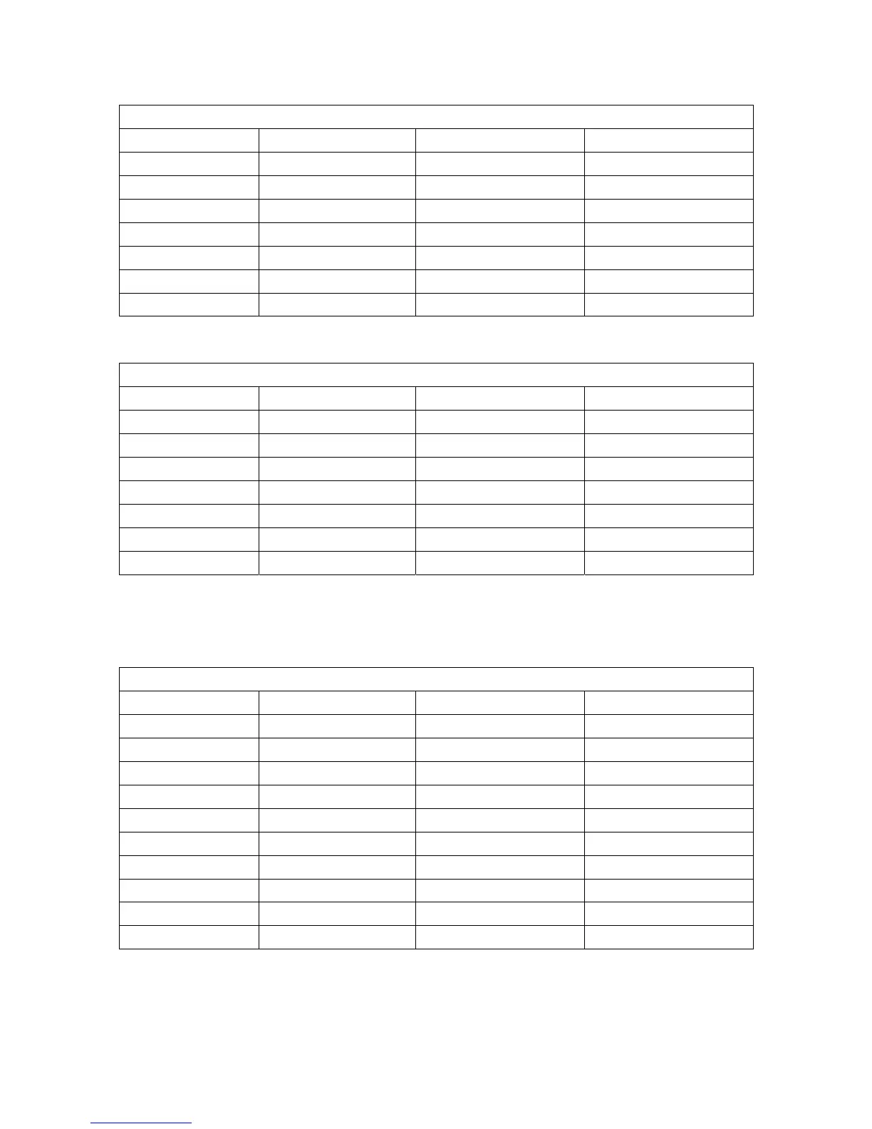 equipment according to the table below.