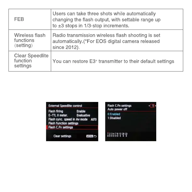 3.1 Select[Flash C.Fn settings]or[External ash C.Fn setting]