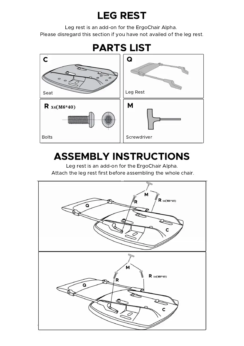Aofeis ALPHA - Optional Leg Rest; Leg Rest Parts; Leg Rest Assembly