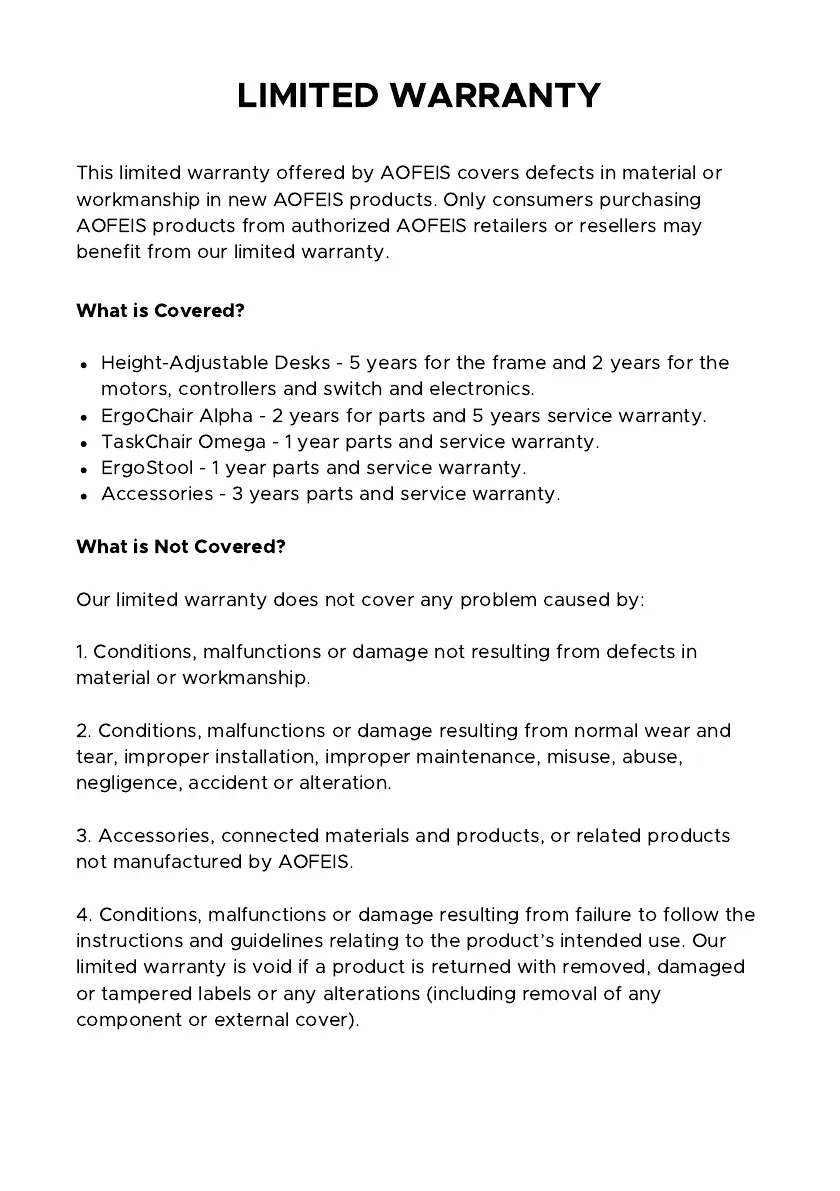 Aofeis ALPHA - Product Limited Warranty; Warranty Coverage Details; Warranty Exclusions
