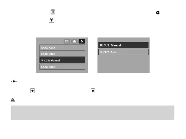 In Standby Mode, press button to enter Menus, and go to SETUP, find “IR CUT” in .