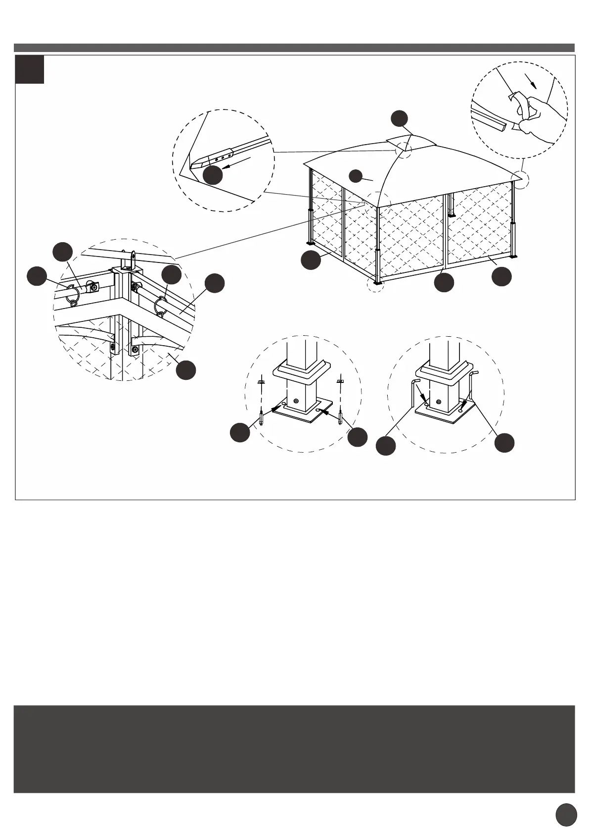 Attach the fabric top cover on the gazebo roof.
