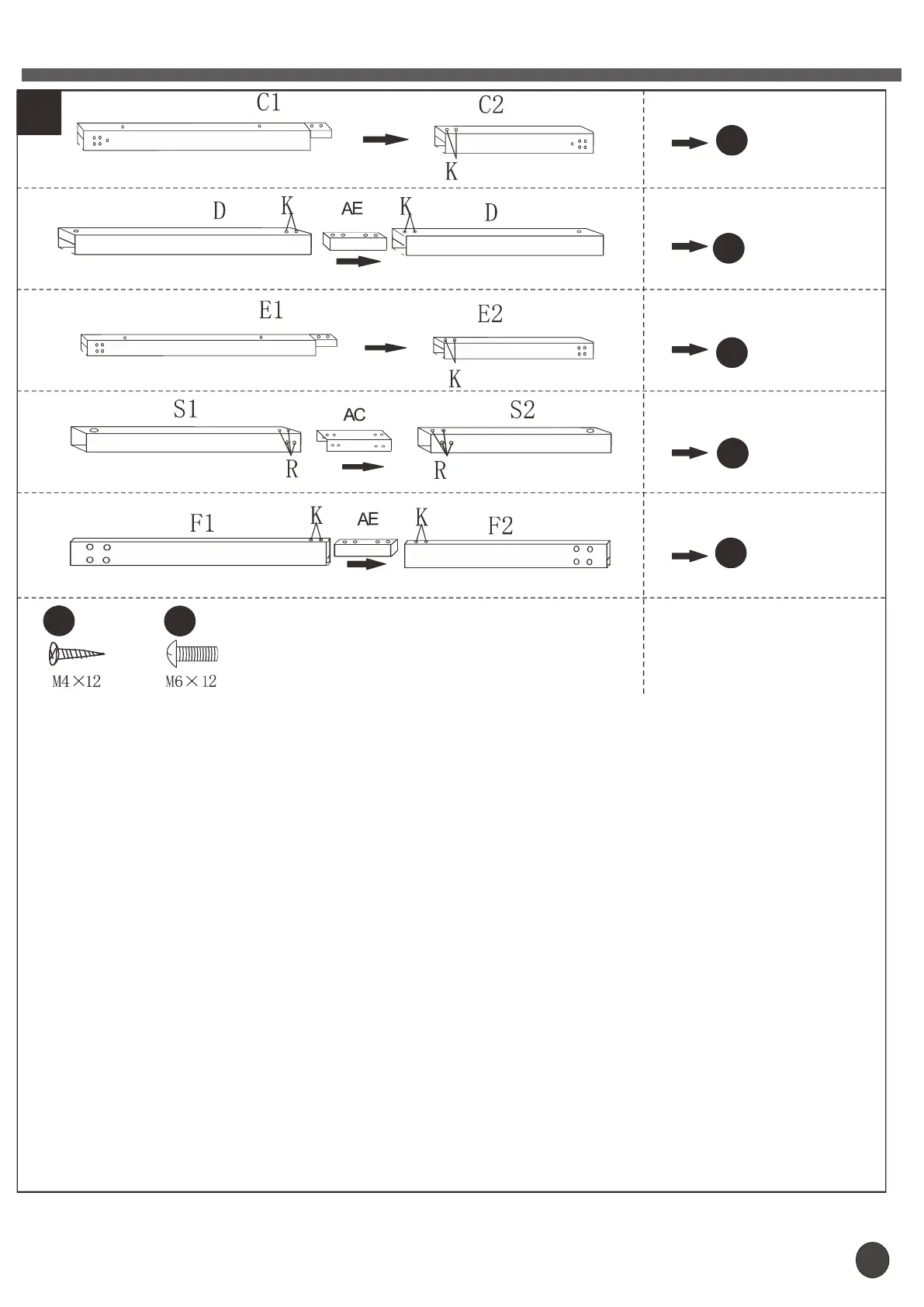 3.Connect (E1) with (E2) together using screw(K) tightly to became Side Beam(E)