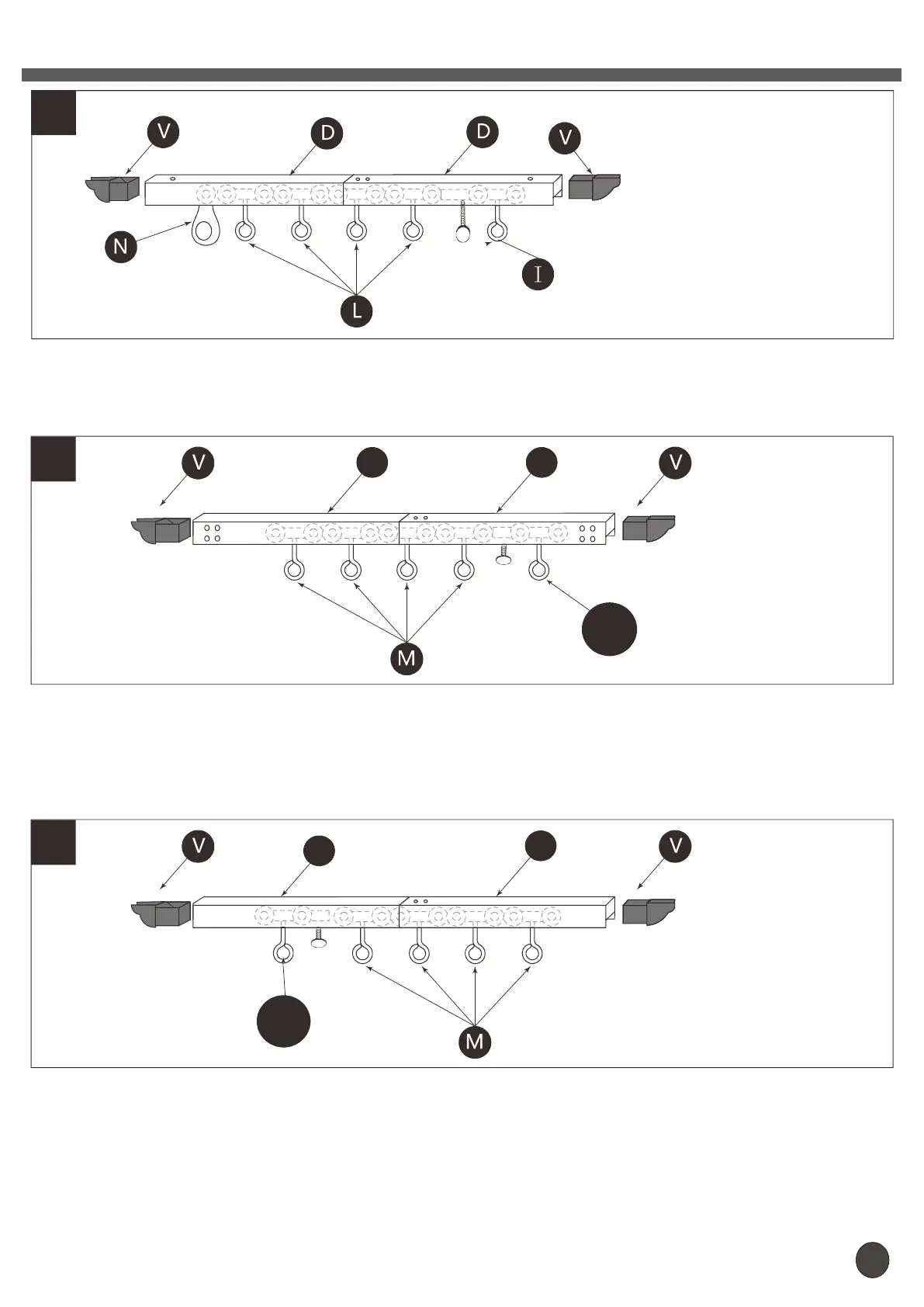 Insert the Hook pulley as the figure shown above.(N)x1,(L)x4,(I)x1. And cover the beam cap(V).