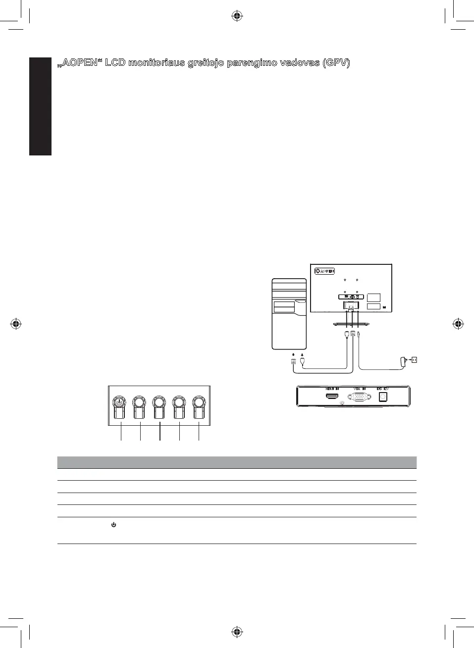 „AOPEN“ LCD monitoriaus greitojo parengimo vadovas (GPV)