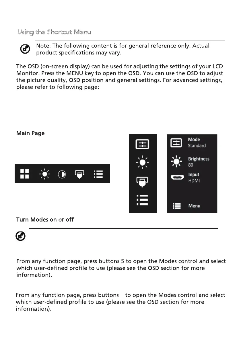 AOpen 34HC5CUR - Using the Shortcut Menu