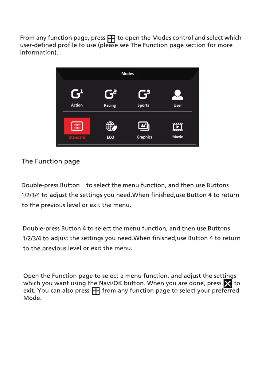 Button Menu/Navi/Ok to return to the previous level or exit the menu.