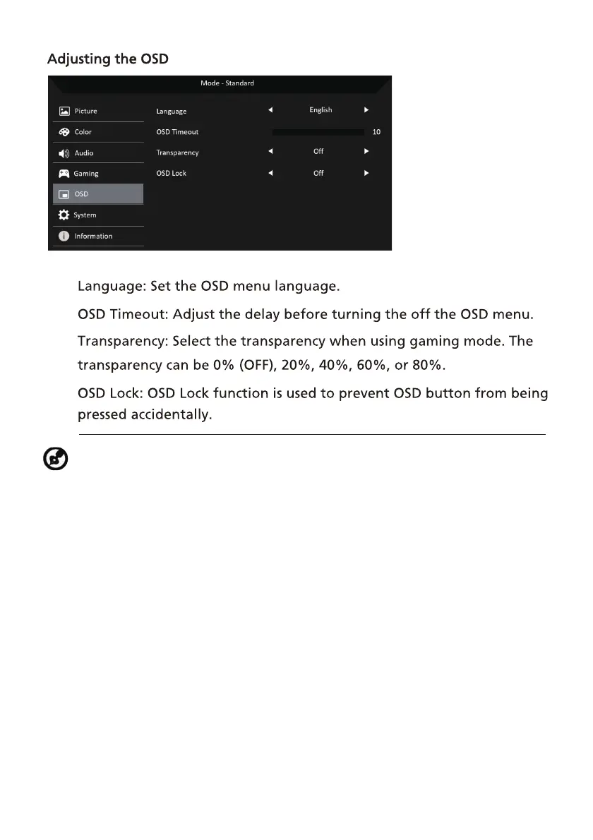 AOpen 34HC5CUR - Adjusting the OSD